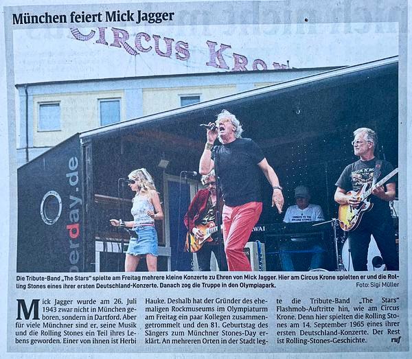 Vom legendären Konzert im Circus Krone bis hin zu wilden Abenden im P1: Die Rolling Stones brachten nicht nur ihre extravaganten Tanzmoves, sondern auch viel Sex, Drugs & Rock’n’Roll nach München. Am 26. Juli 2024, zufälligerweise auch Mick Jaggers Geburtstag, ehren Münchner Fans die legendäre Band mit einem Stones Day in der bayerischen Landeshauptstadt. Sie begleiten die Tribute-Band The Stars auf ihrem Weg durch München und singen gemeinsam mit vielen anderen „Happy birthday, Mick“, bevor die Stars zum krönenden Abschluss nochmals die Bühne entern.